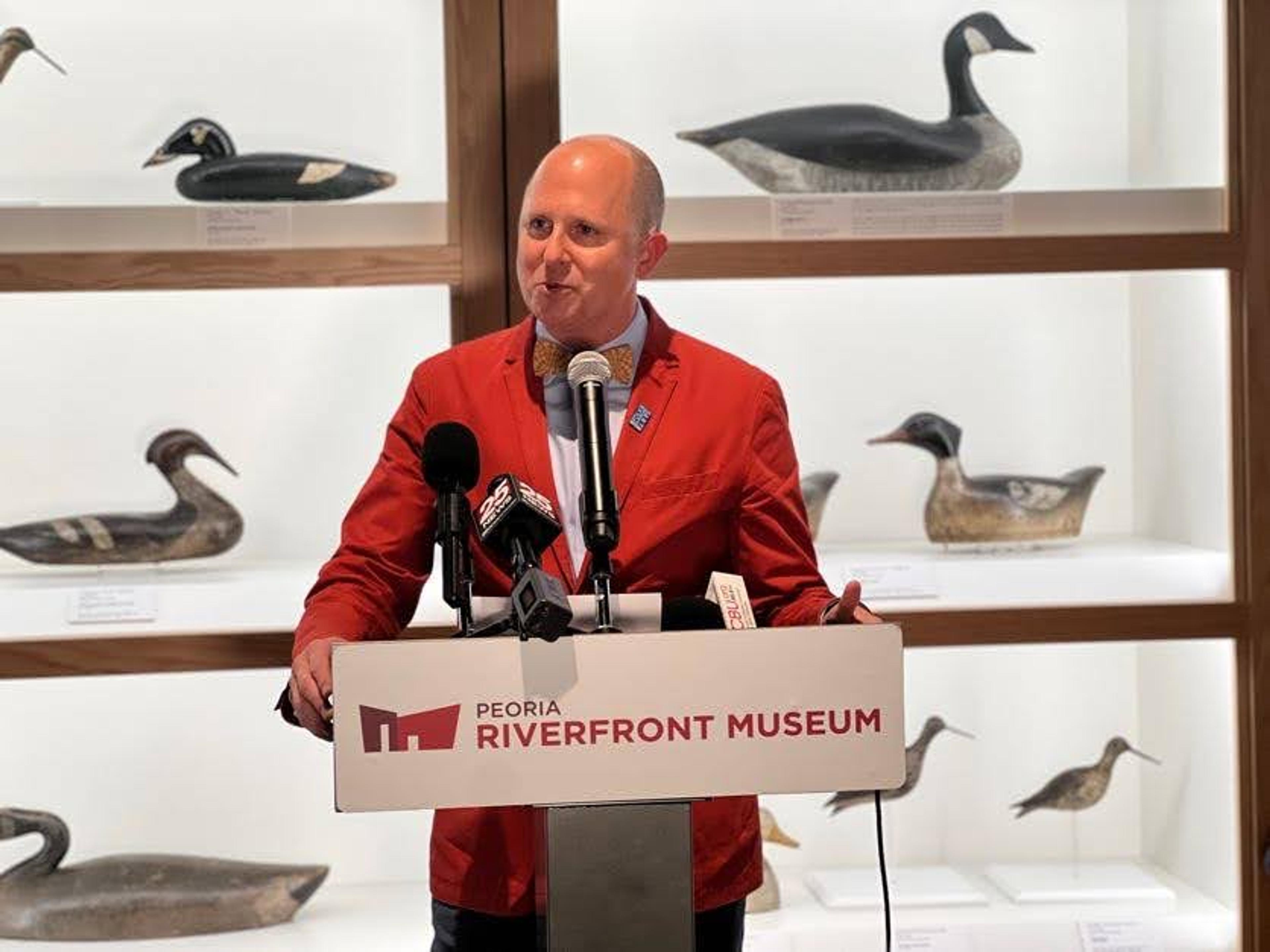 American Folk Art Museum Director and CEO Jason Busch spoke about the 47 decoys loaned to Peoria via our Partner Loan Network. Photo courtesy of Peoria Riverfront Museum.